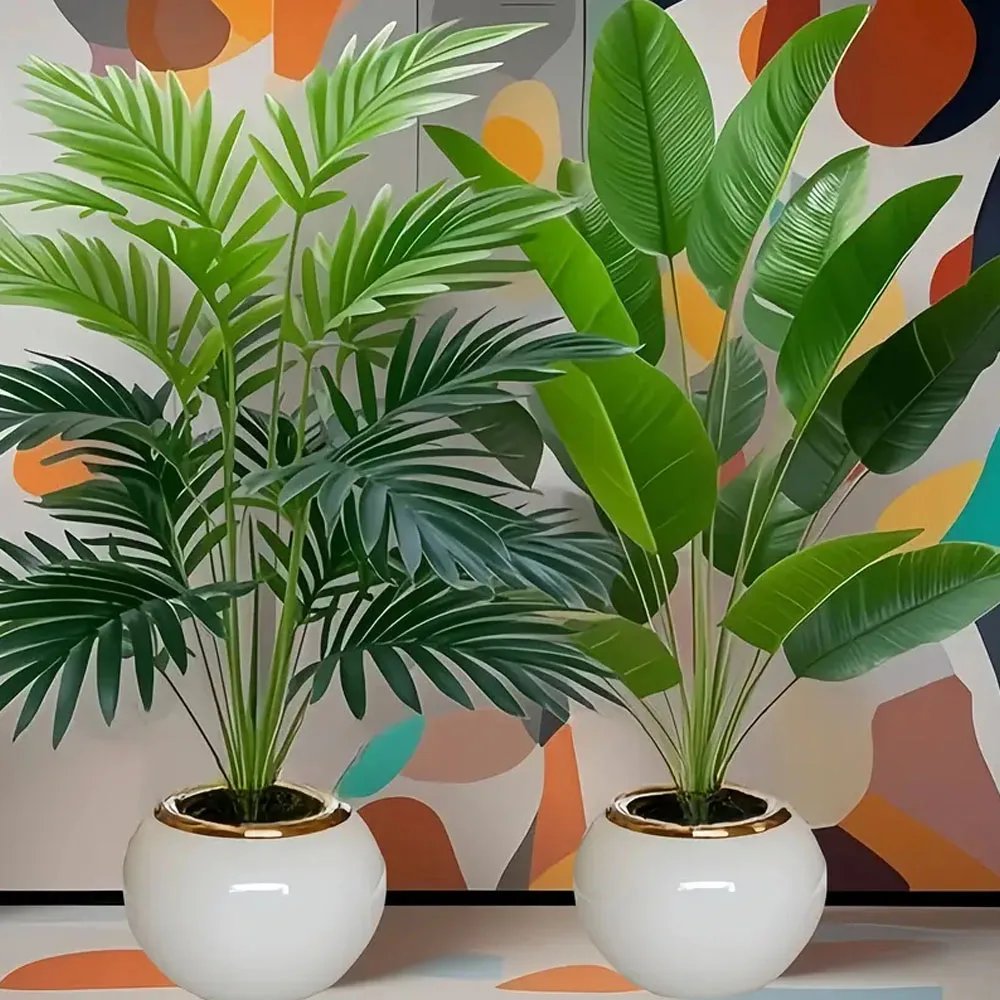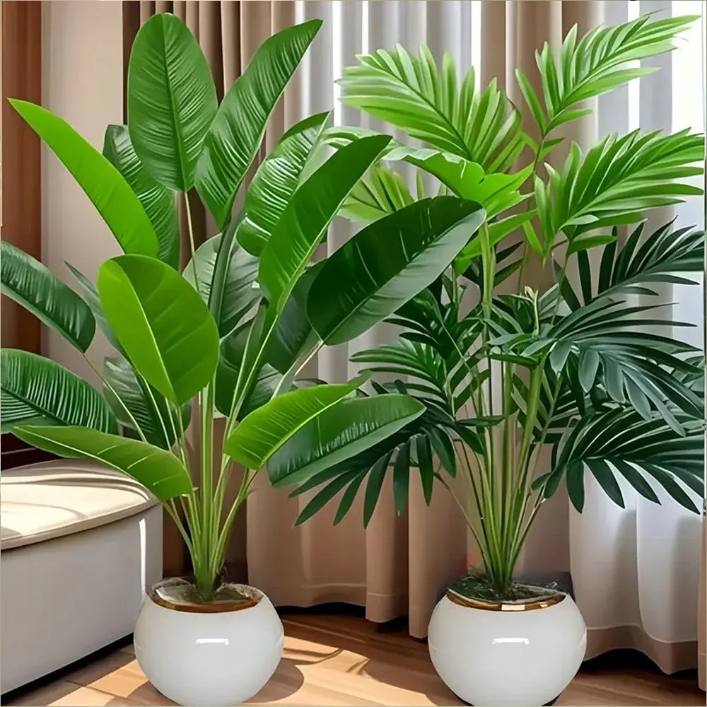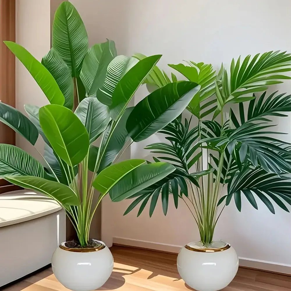 2Pcs Outdoor Artificial Green Plants with 24 Leaves Nordic-style Banana Leaf Palm Trees Designed Tropical Rainforest Landscapes
