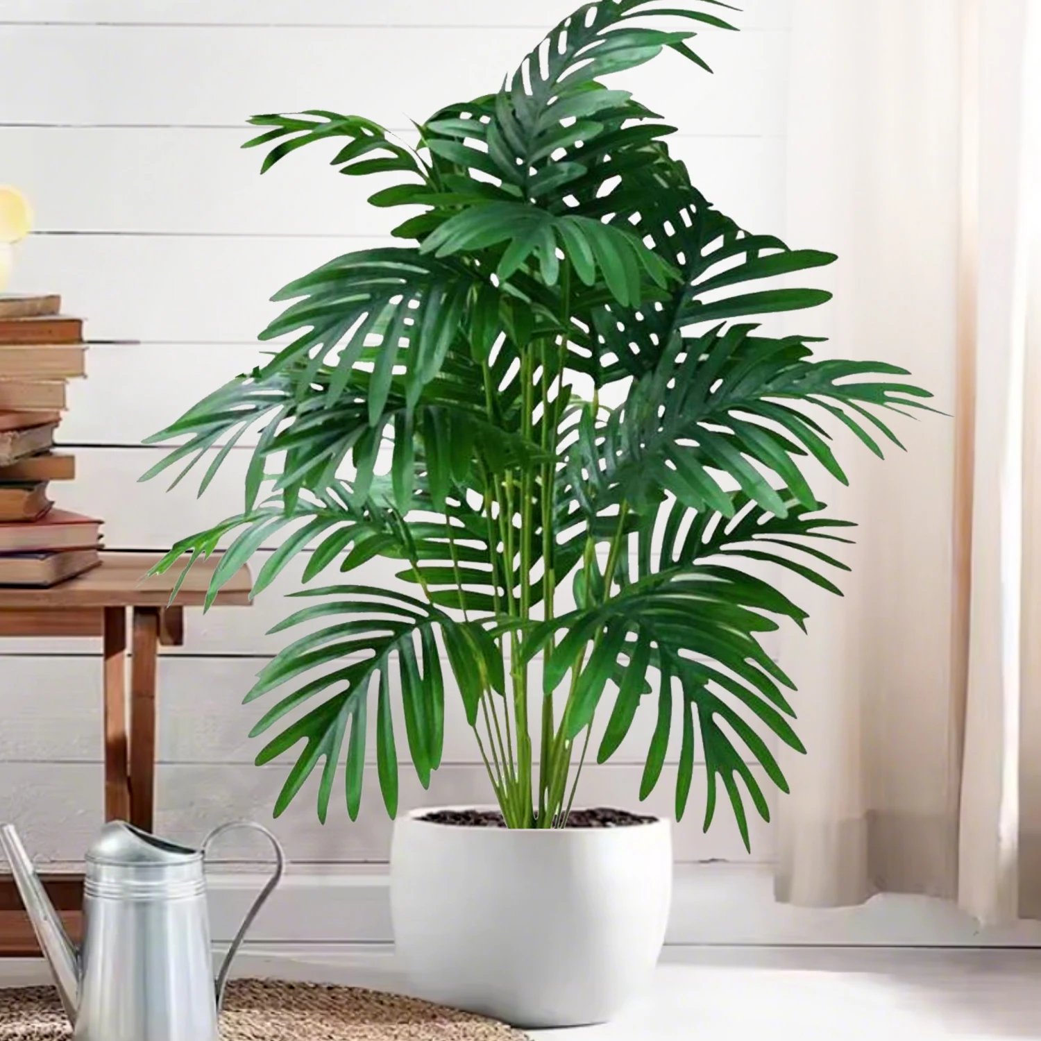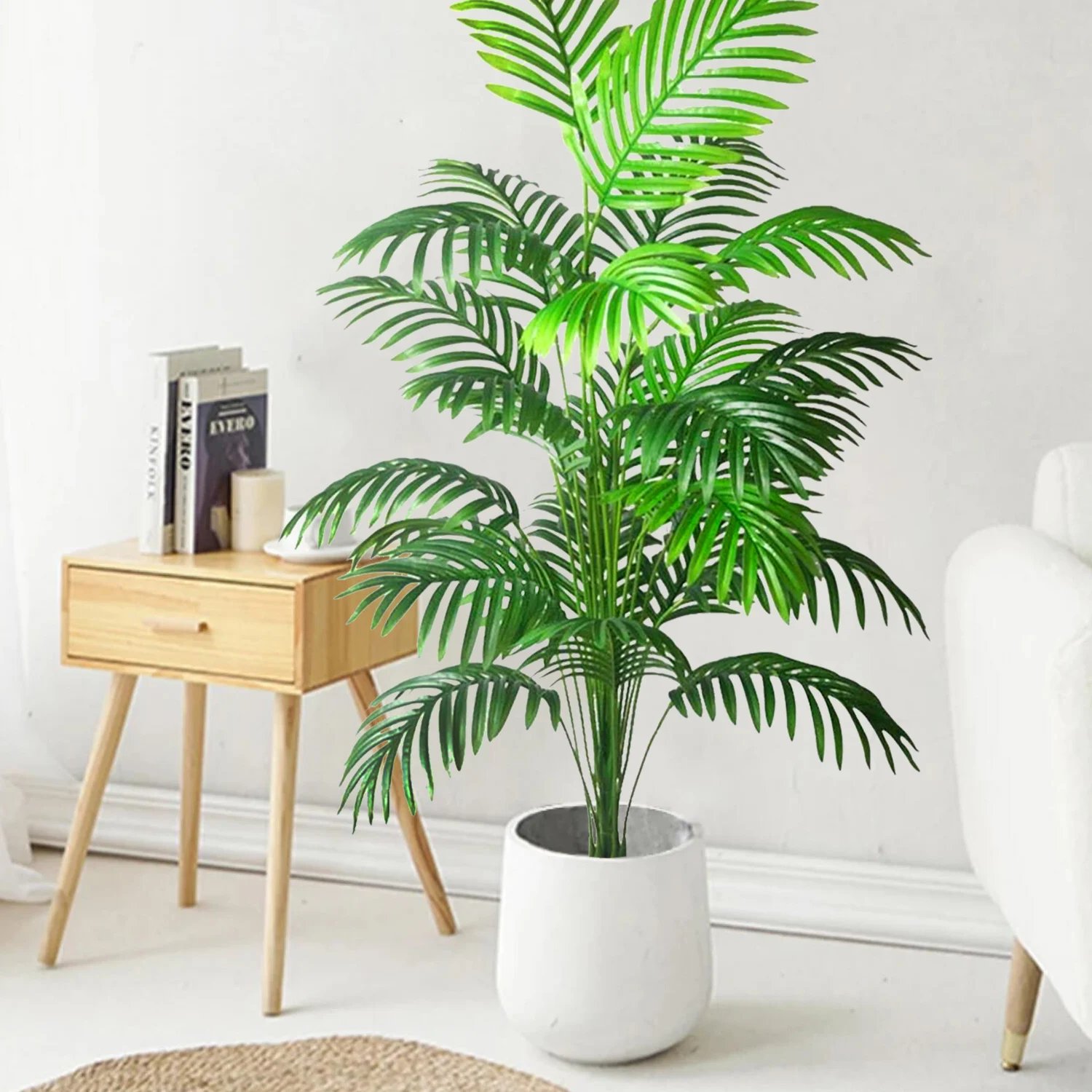 66-125cm(49.2in) Artificial Palm Tree Tropical Fake Plant Green Plastic Palm Leaf Branches Suitable for Home Garden Decoration