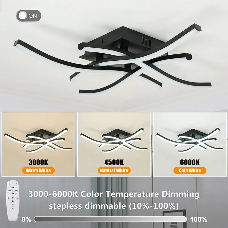 The ceiling light for bedroom features a sophisticated, curved design that seamlessly fits with any modern or contemporary interior. With a minimalist style that complements both small and large spaces, this light fixture serves as an aesthetic focal point while providing ample lighting for your room. Its elegant look adds a polished touch, elevating the overall atmosphere of your bedroom or any other room where it is installed.