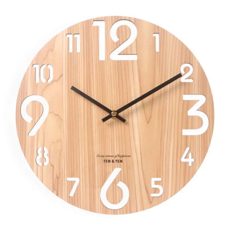 With a diameter of 30 cm (12 inches), this Wooden Wall Clock Modern Design is large enough to be a focal point while still fitting comfortably on most walls. Its single-face display makes reading time easy from a distance.